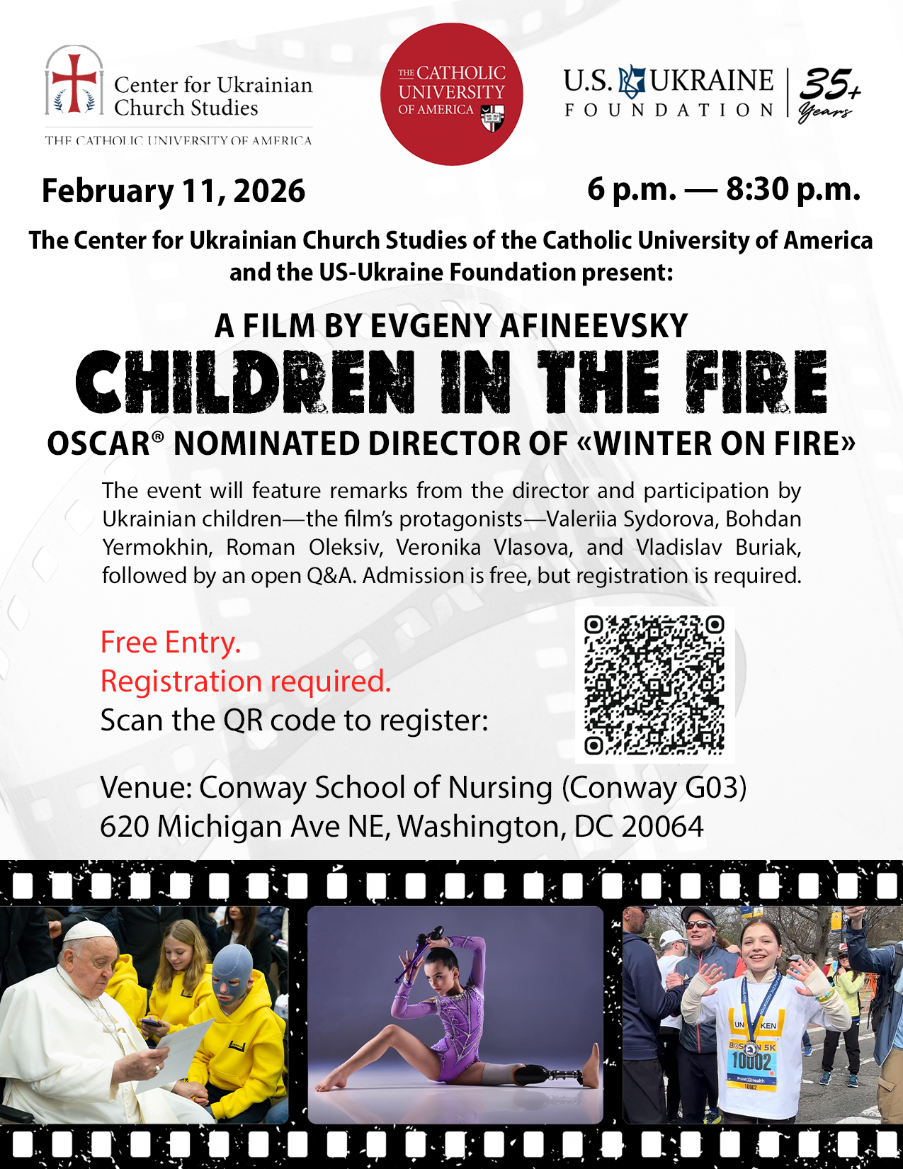 The event will feature remarks from the director and participation by Ukrainian children—the film’s protagonists—Valeriia Sydorova, Bohdan Yermokhin, Roman Oleksiv, Veronika Vlasova, and Vladislav Buriak, followed by an open Q&A. Admission is free, but registration is required.